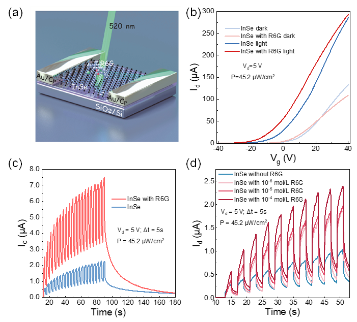 图3. 引入R6G对InSe光电性能的影响
